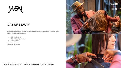 You can learn more about the situation in Haiti by listening to this interview from KUOW with Pierre Stanley Baptiste, the managing director and co-founder of the co-working space Impact Hub Port-au-Prince, established by Kay Tita in 2017. Yvey Valcin, award-winning stylist and founder of local salon Yvey, is a proud supporter of the work Kay Tita fosters in Port-au-Prince.